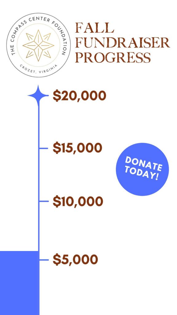 We take donations year-round. You can send donations by mail (The Compass Center Foundation, 5455 Jones Mill Rd., Crozet, VA 22932), or Venmo (@compasscenterlearning 4 digits: 0251)